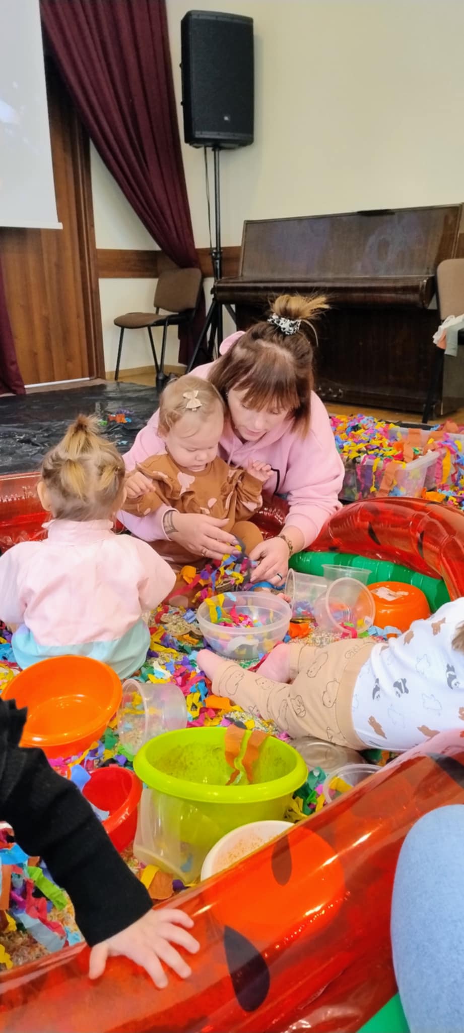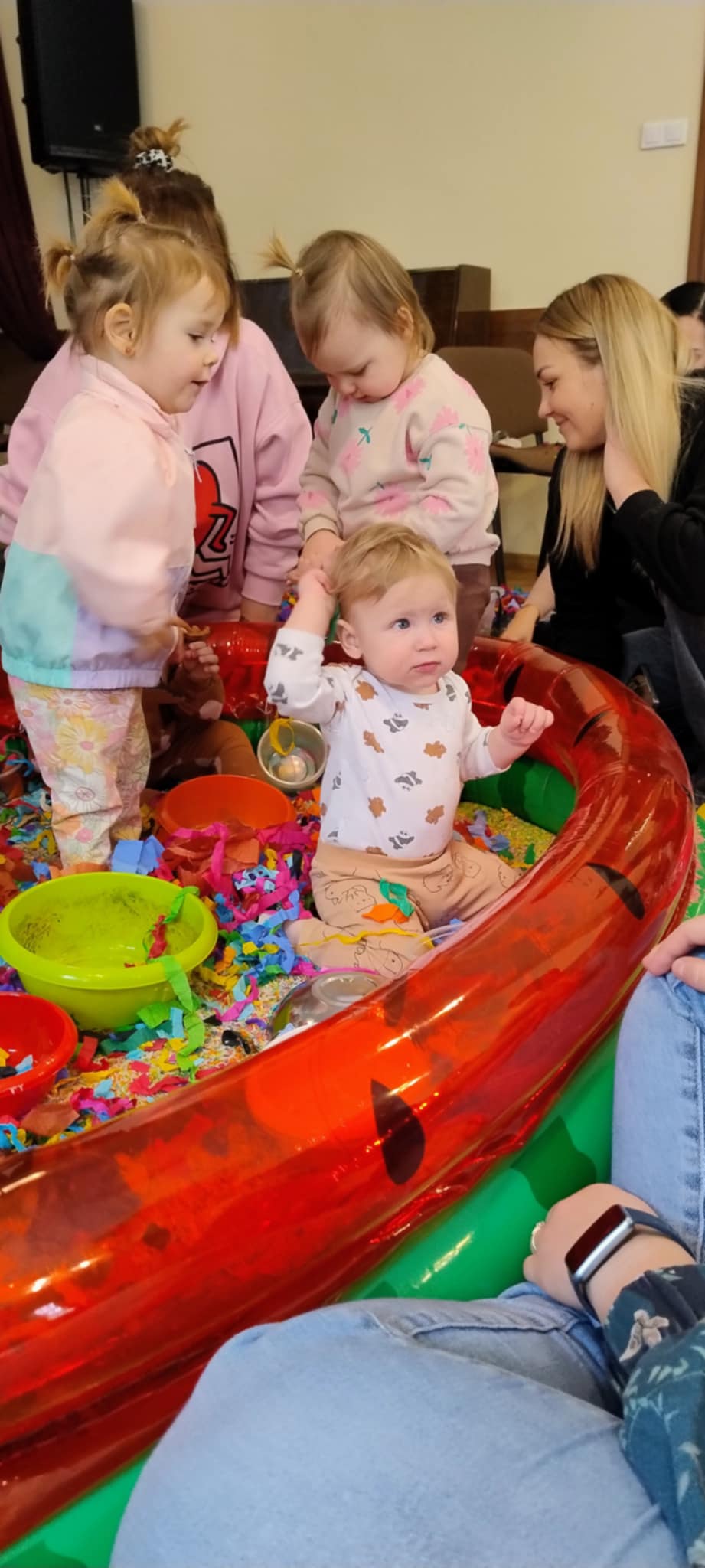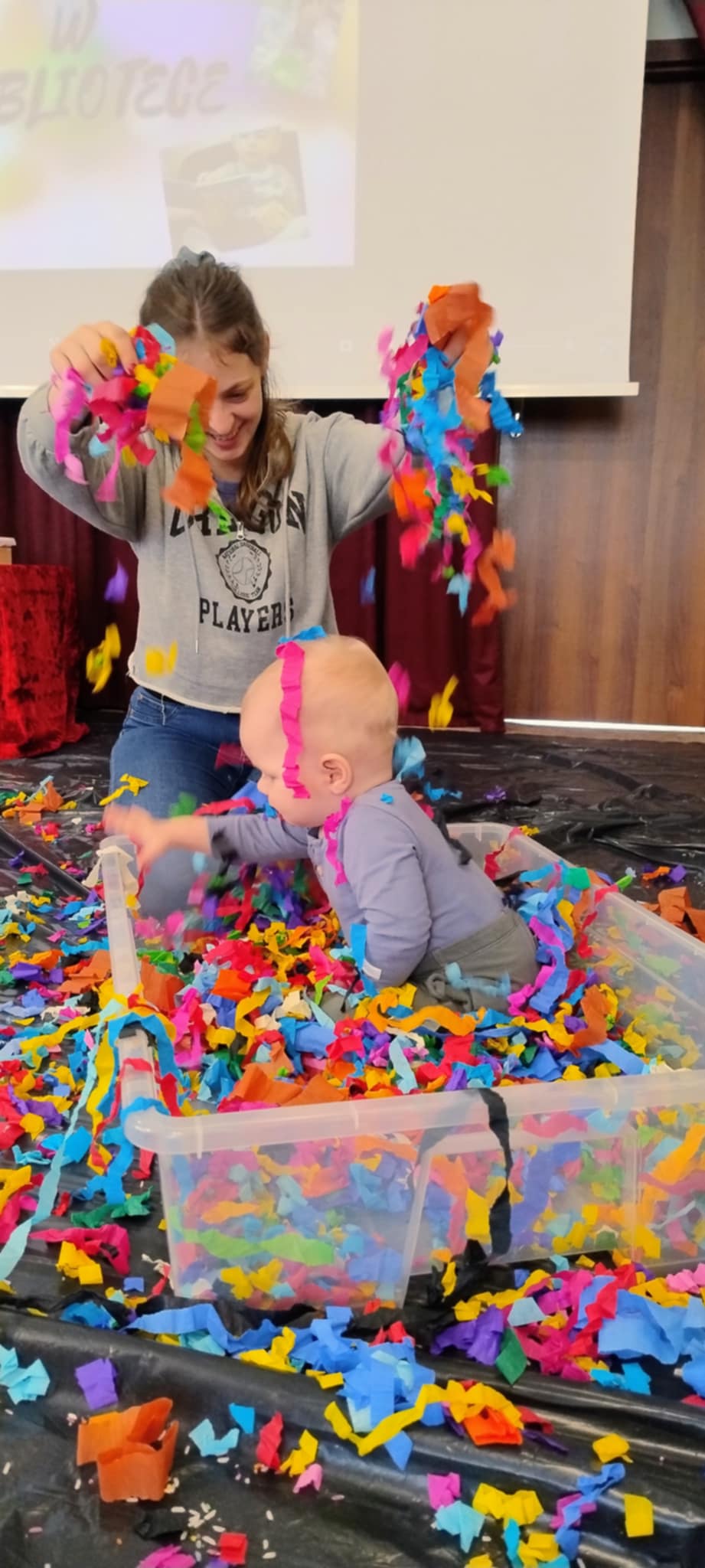 Kolejne zabawowe spotkanie dla najmłodszych bywalców biblioteki (17.02.2025 r.), zakończyło się pełnym sukcesem. Jak zawsze był to czas słuchania opowieści za pomocą teatru kamishibai, wspólnego pokazywania, rymowania i śpiewania. Zajęcia zakończyliśmy barwną zabawą sensoryczną.