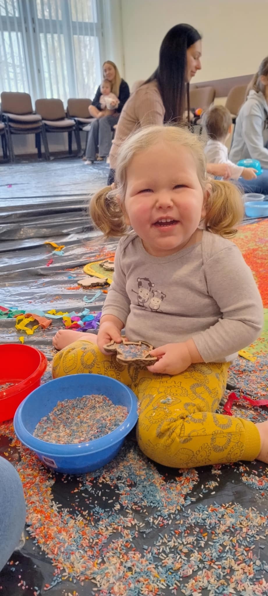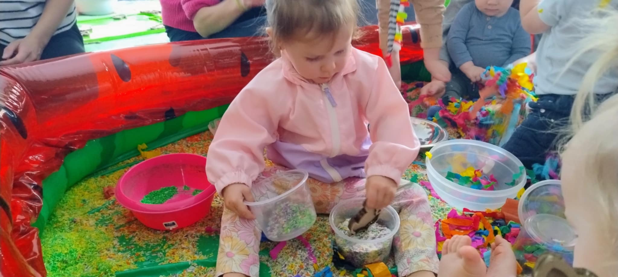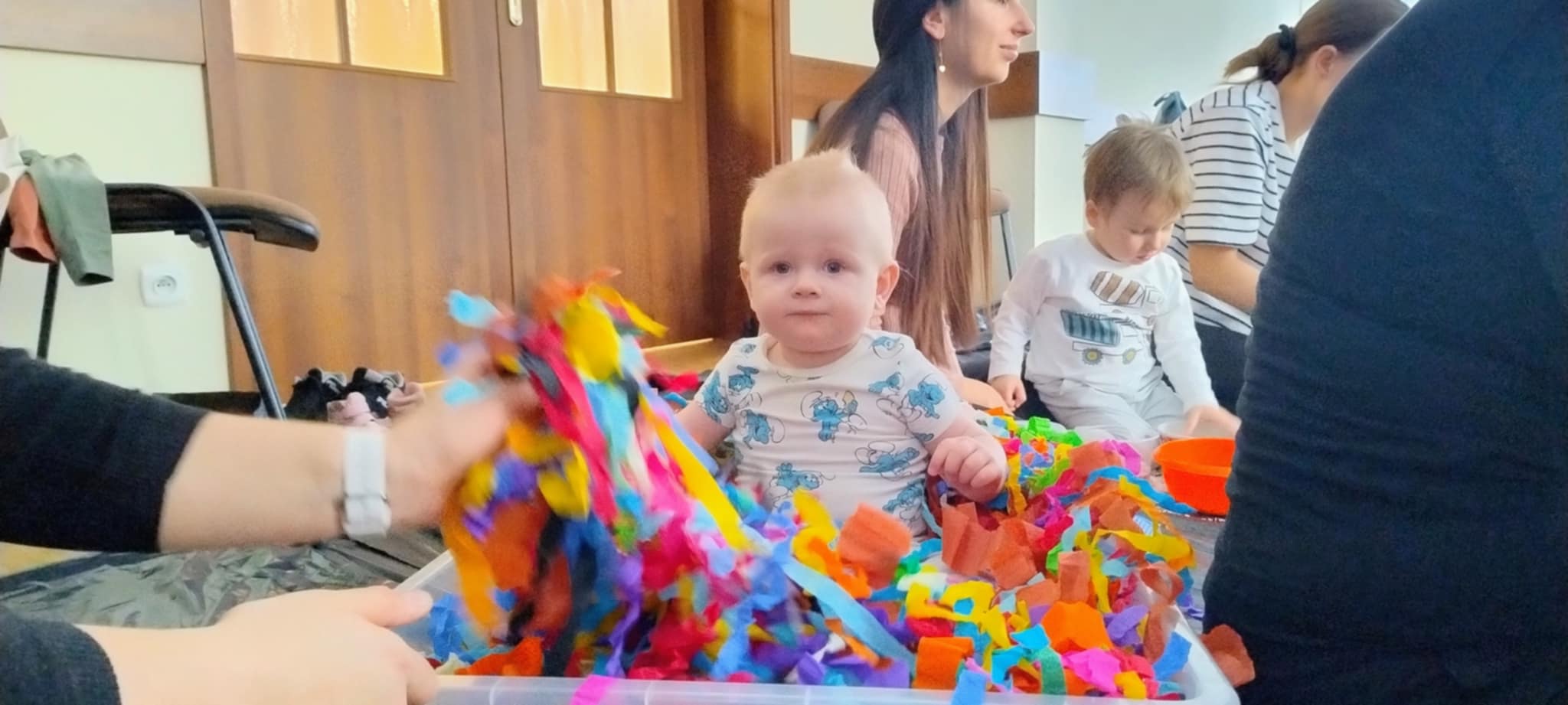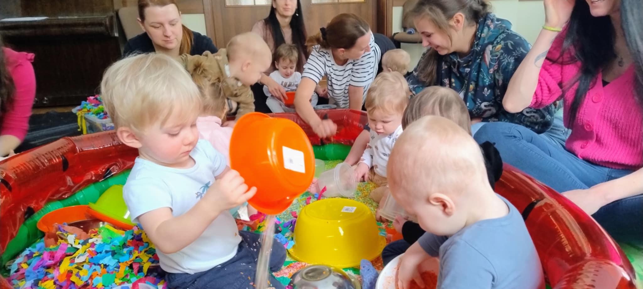 Kolejne zabawowe spotkanie dla najmłodszych bywalców biblioteki (17.02.2025 r.), zakończyło się pełnym sukcesem. Jak zawsze był to czas słuchania opowieści za pomocą teatru kamishibai, wspólnego pokazywania, rymowania i śpiewania. Zajęcia zakończyliśmy barwną zabawą sensoryczną.