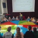 Dzieci podjęły też wyzwania sprawnościowe z chustą Clanza. Było podskakiwanie, falowanie i mnóstwo śmiechu – czyli dokładnie to, co „Tropiciele” lubią najbardziej.